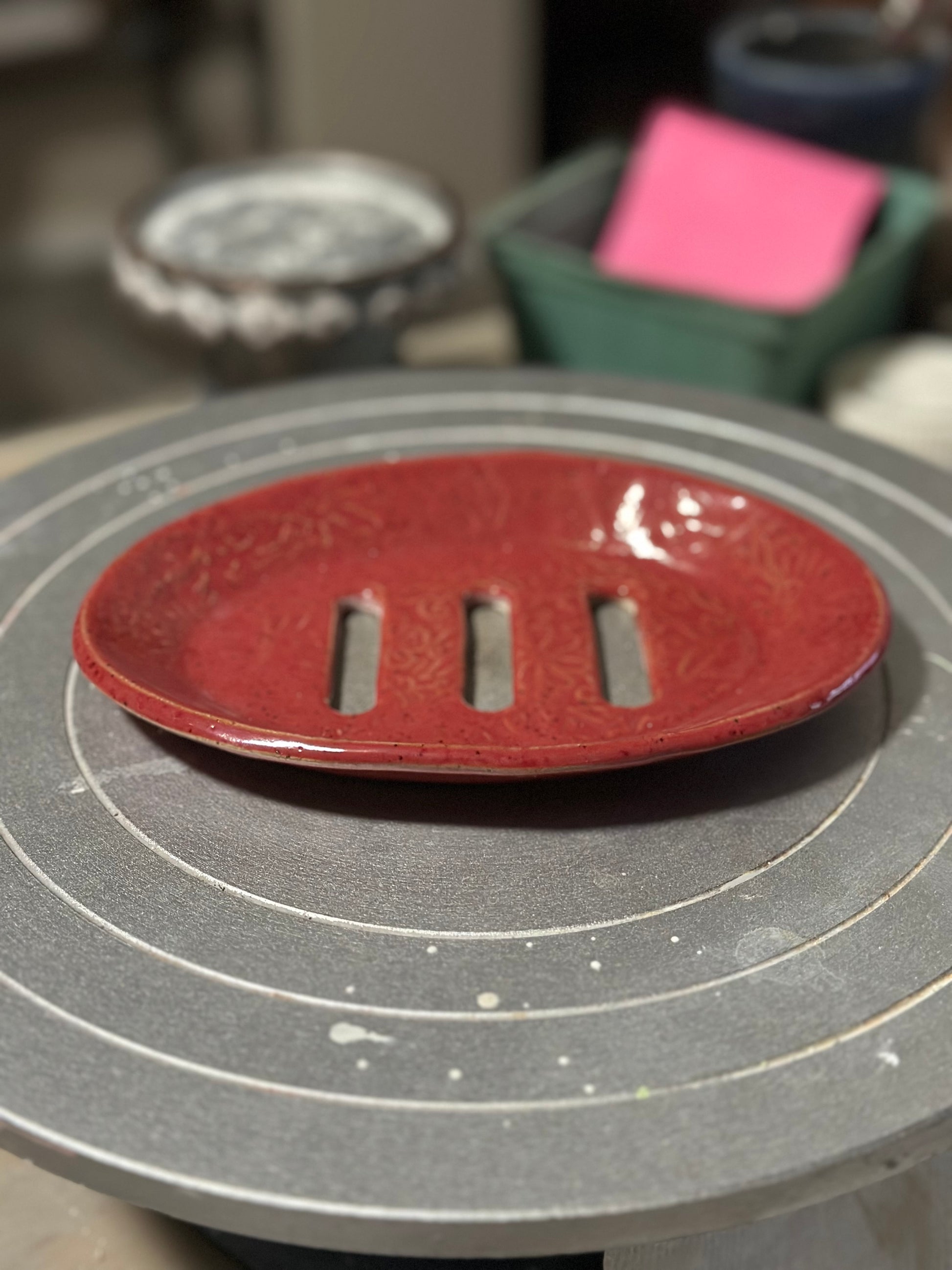 Soap Dish Oval - Red Textured Flowers