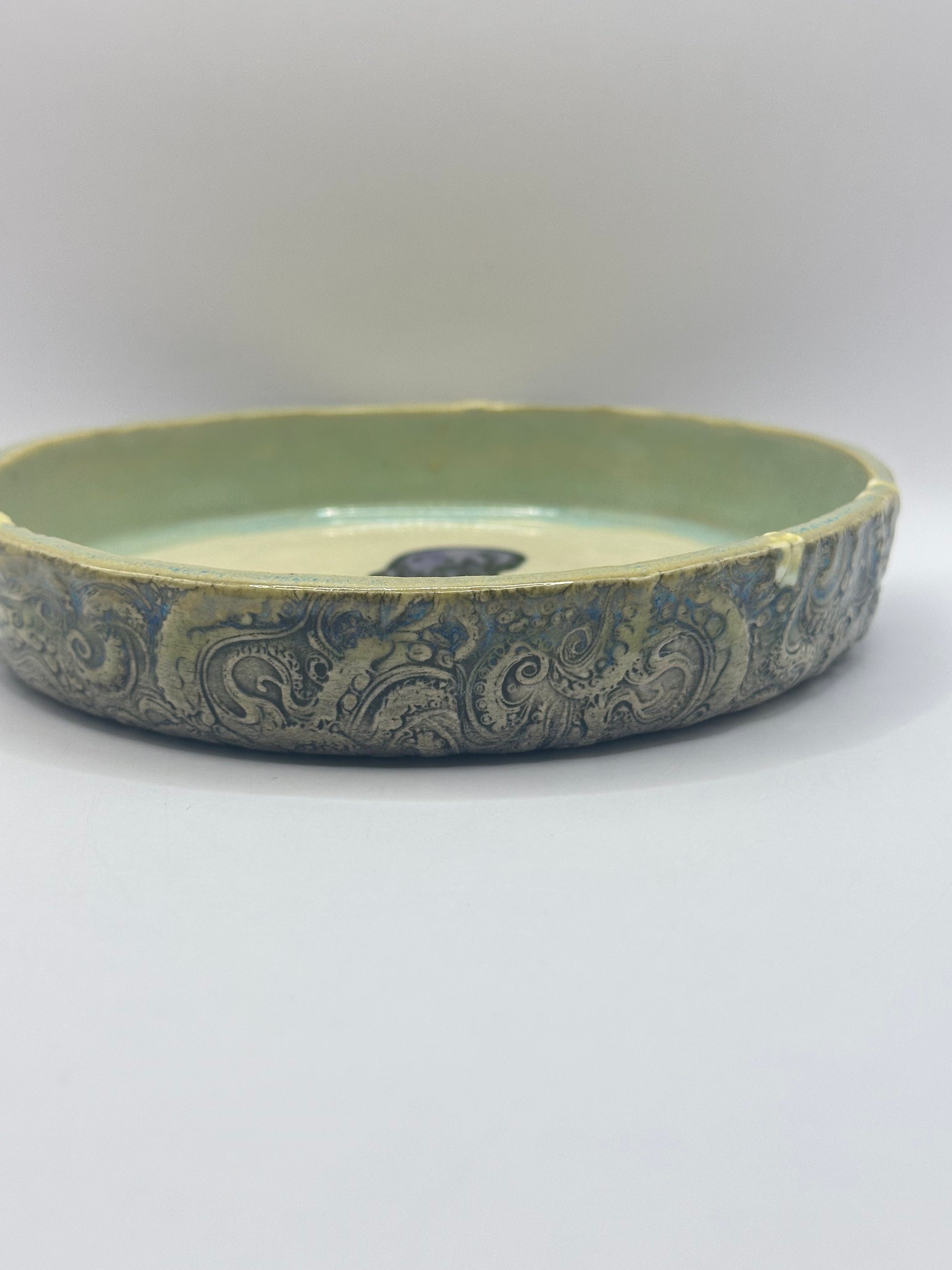 Hand made ceramic dice tray with set of dice (dice color picked by me)