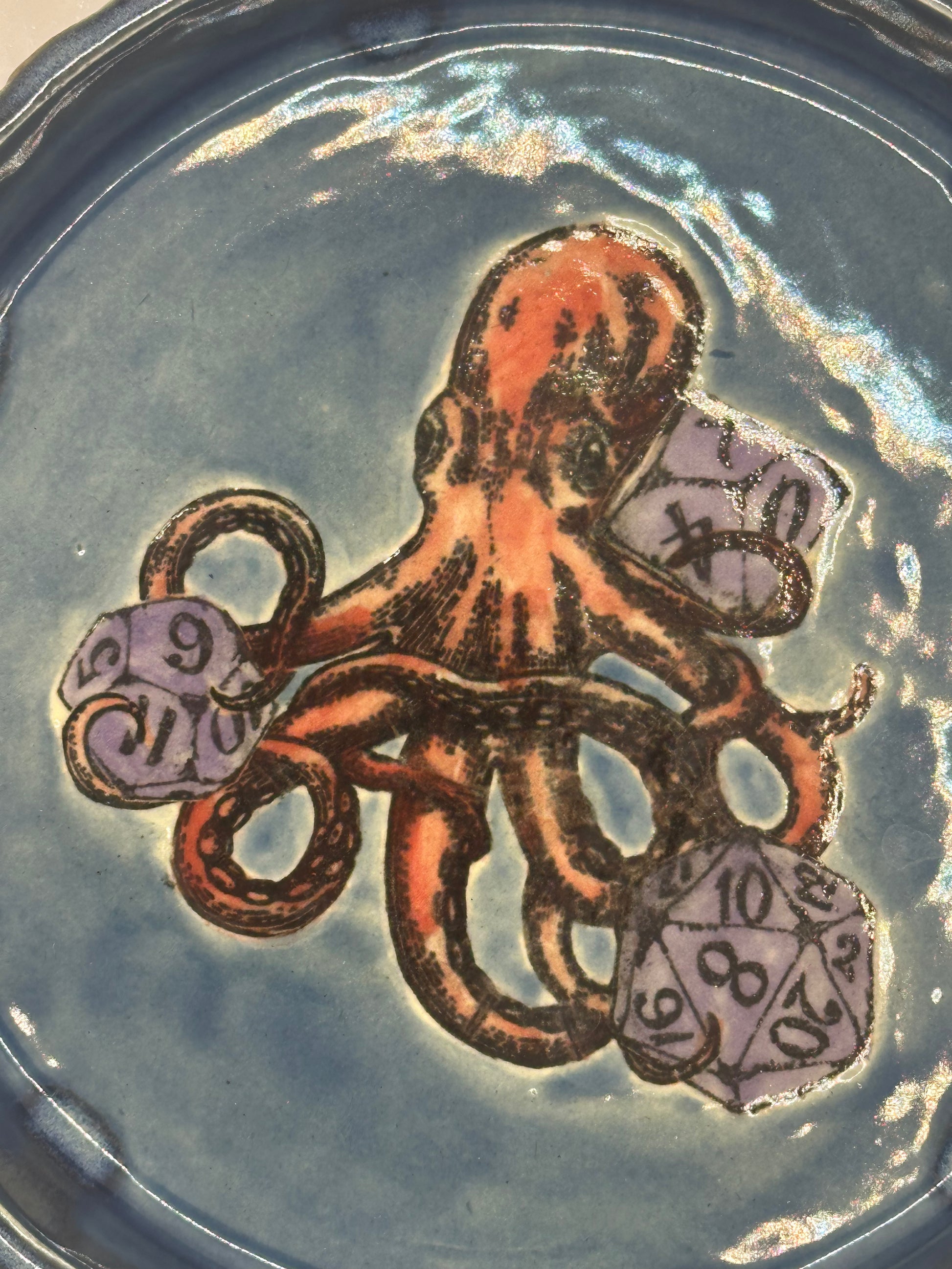 Dice Tray - Red Octopus - Stoned Denim (Includes set of dice)