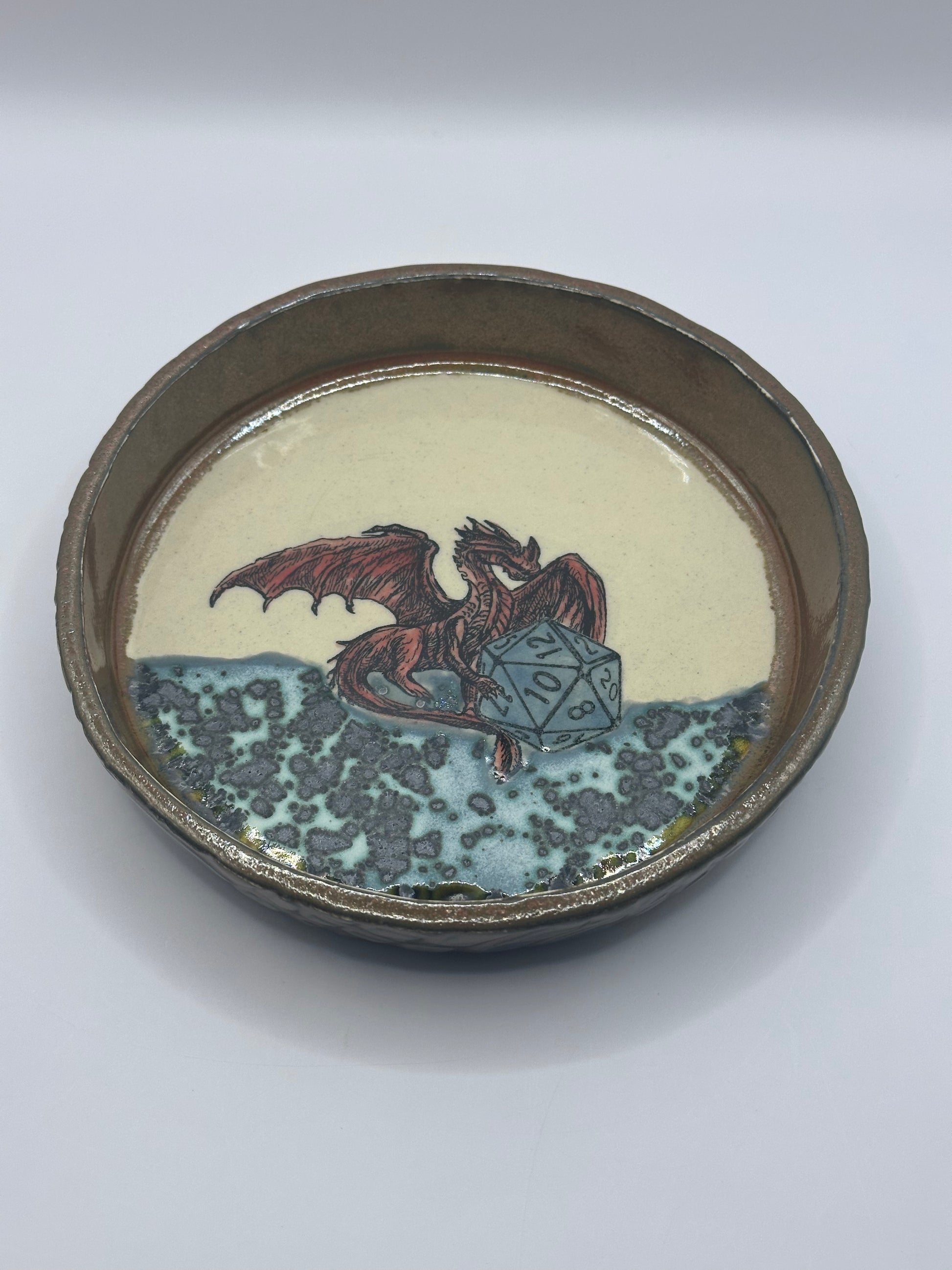 Hand made ceramic dice tray with set of dice (dice color picked by me)