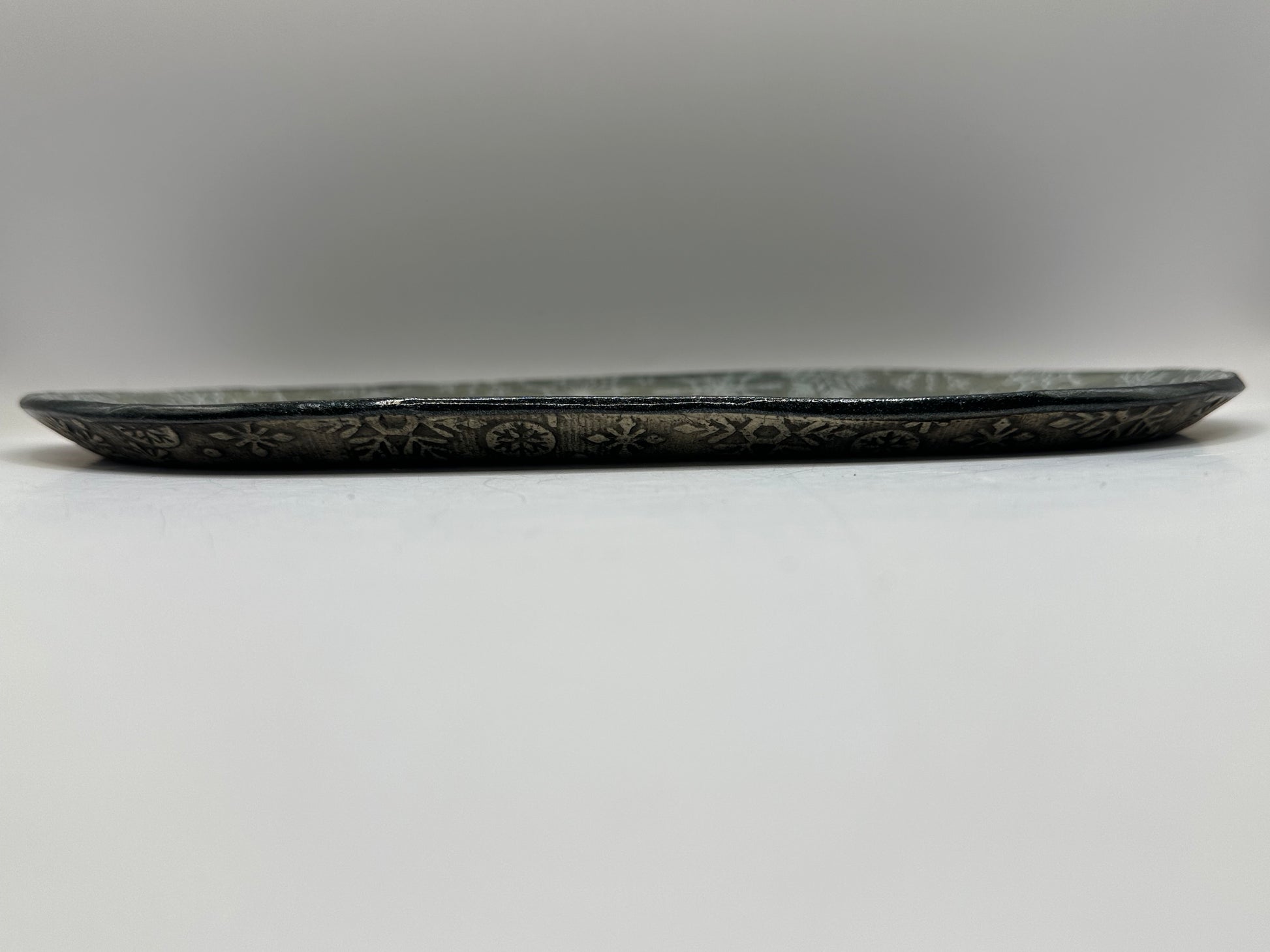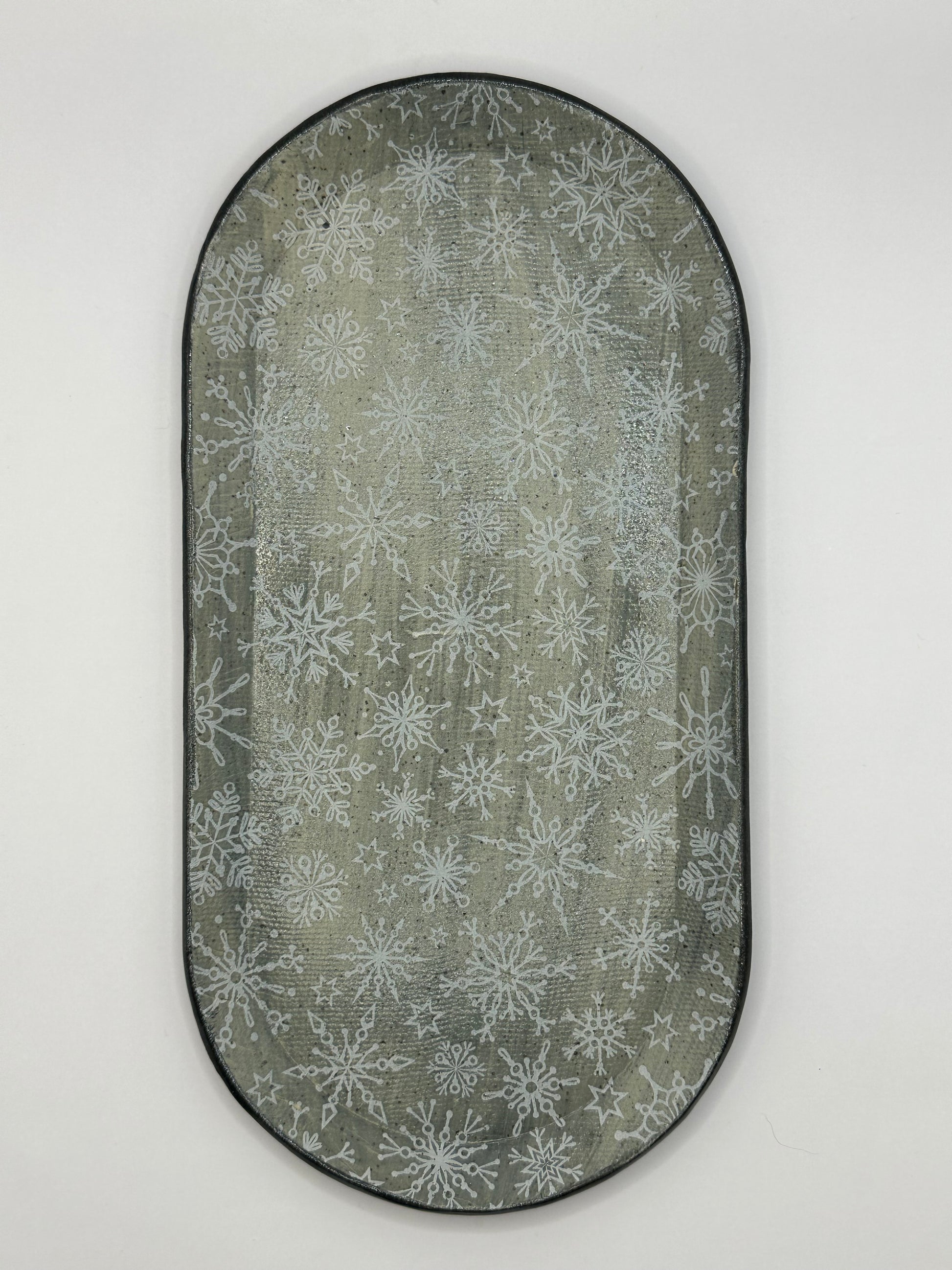 Oblong Dish - Black/Gray snowflake w/Cosmic Tea Dust rim