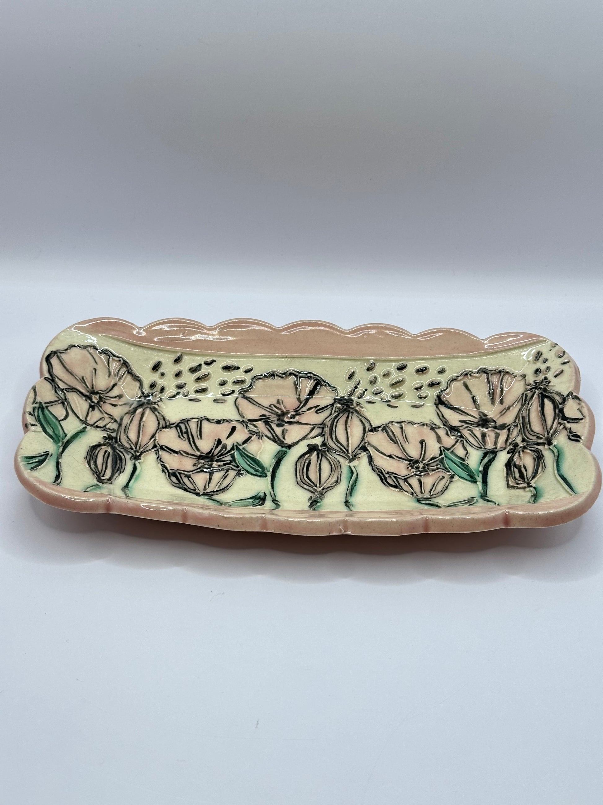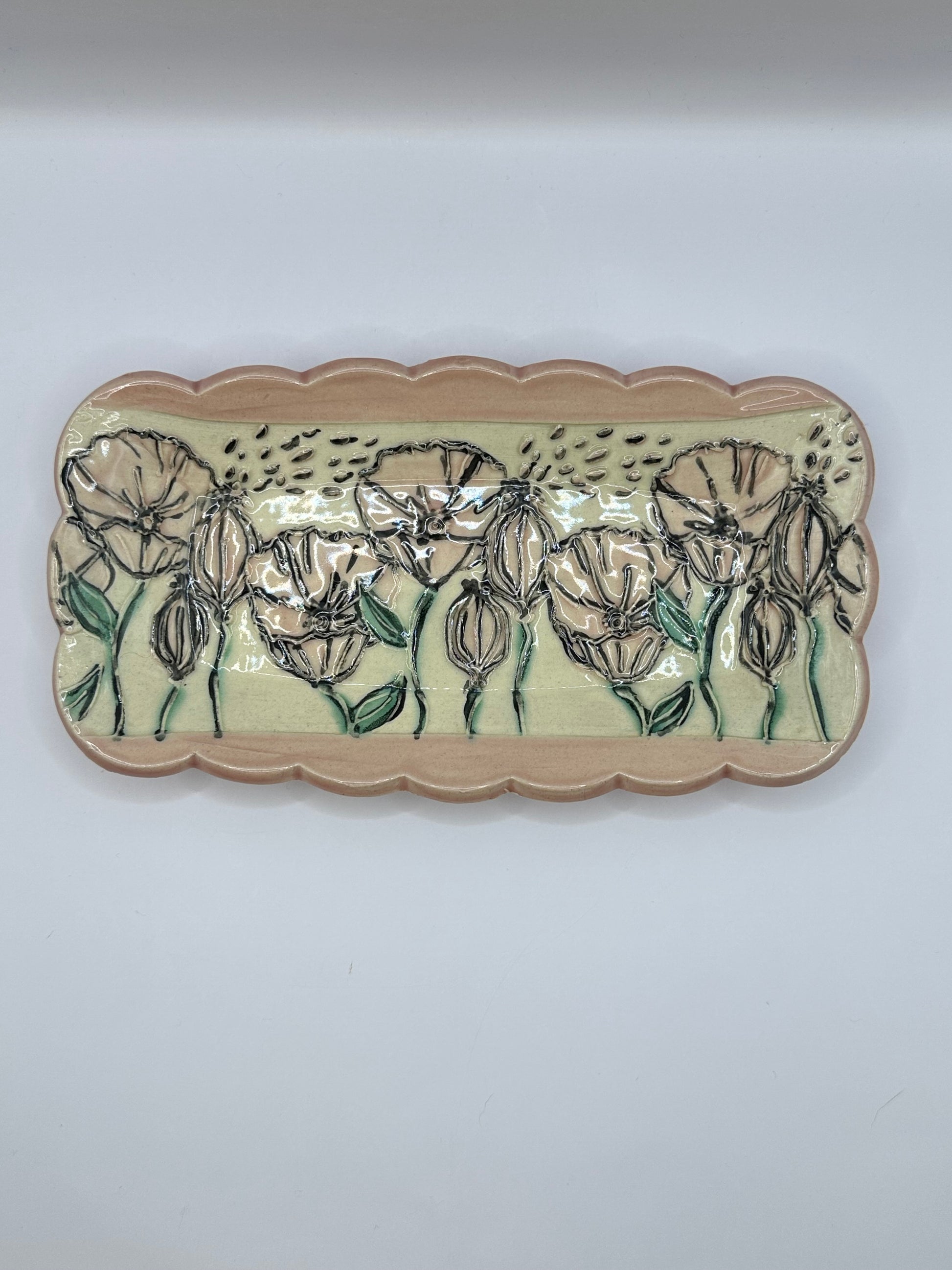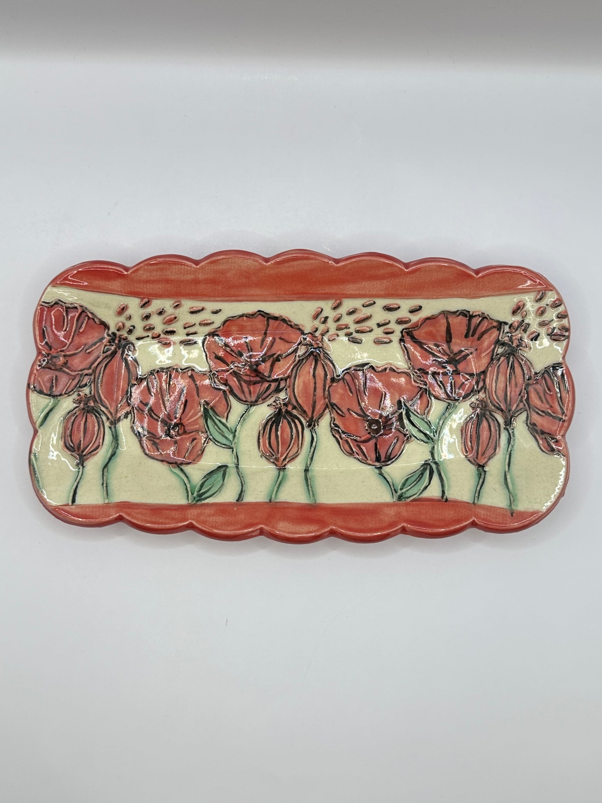 Rectangular Dish Scalloped - Textured Poppies - Multiple Colors Available