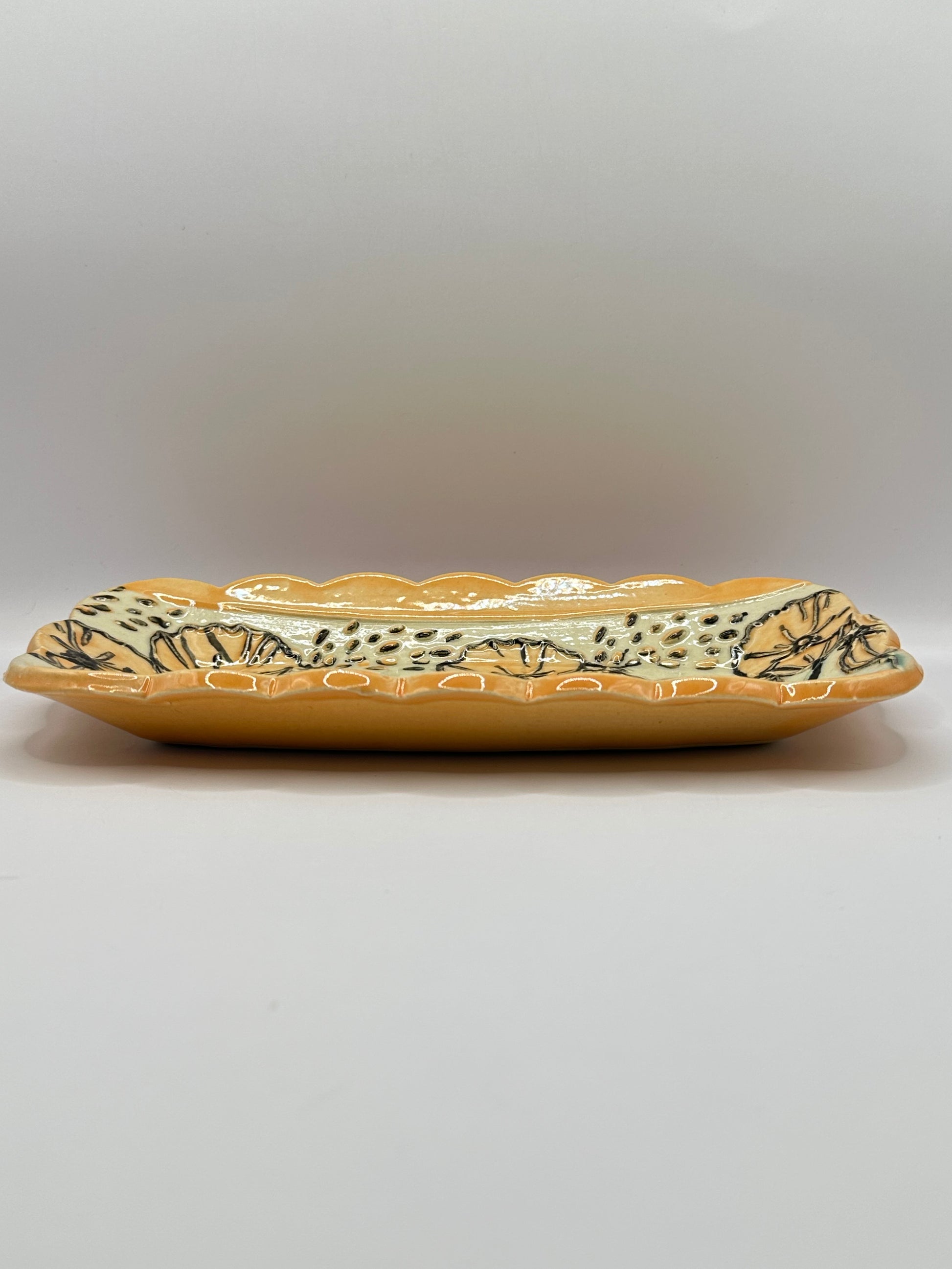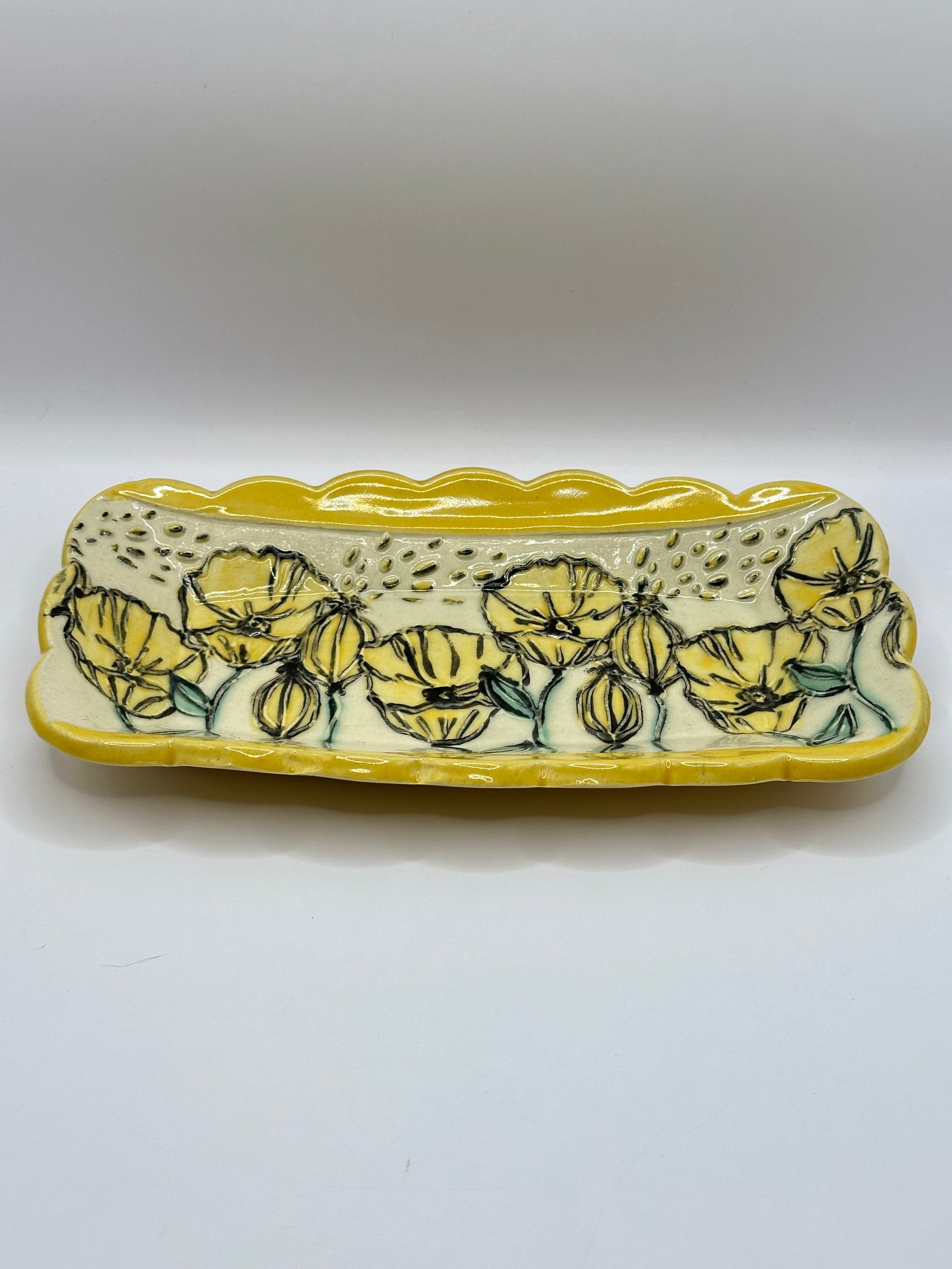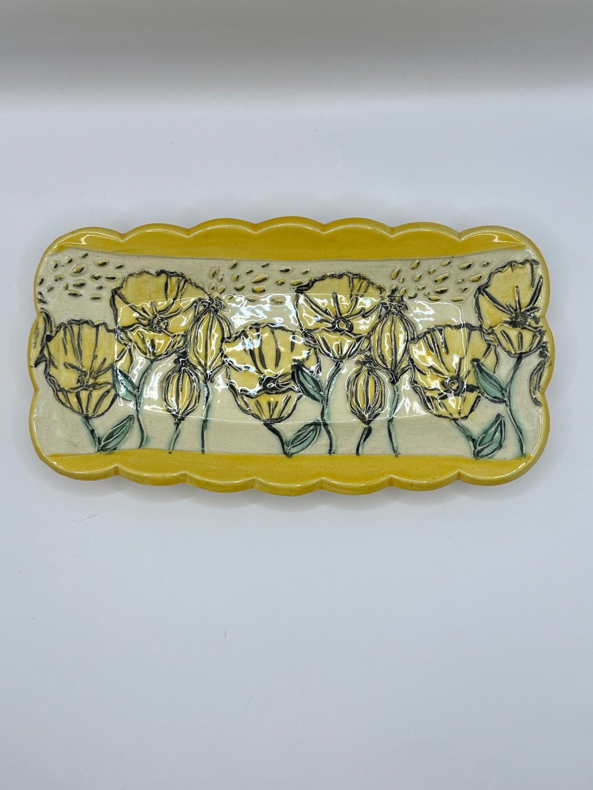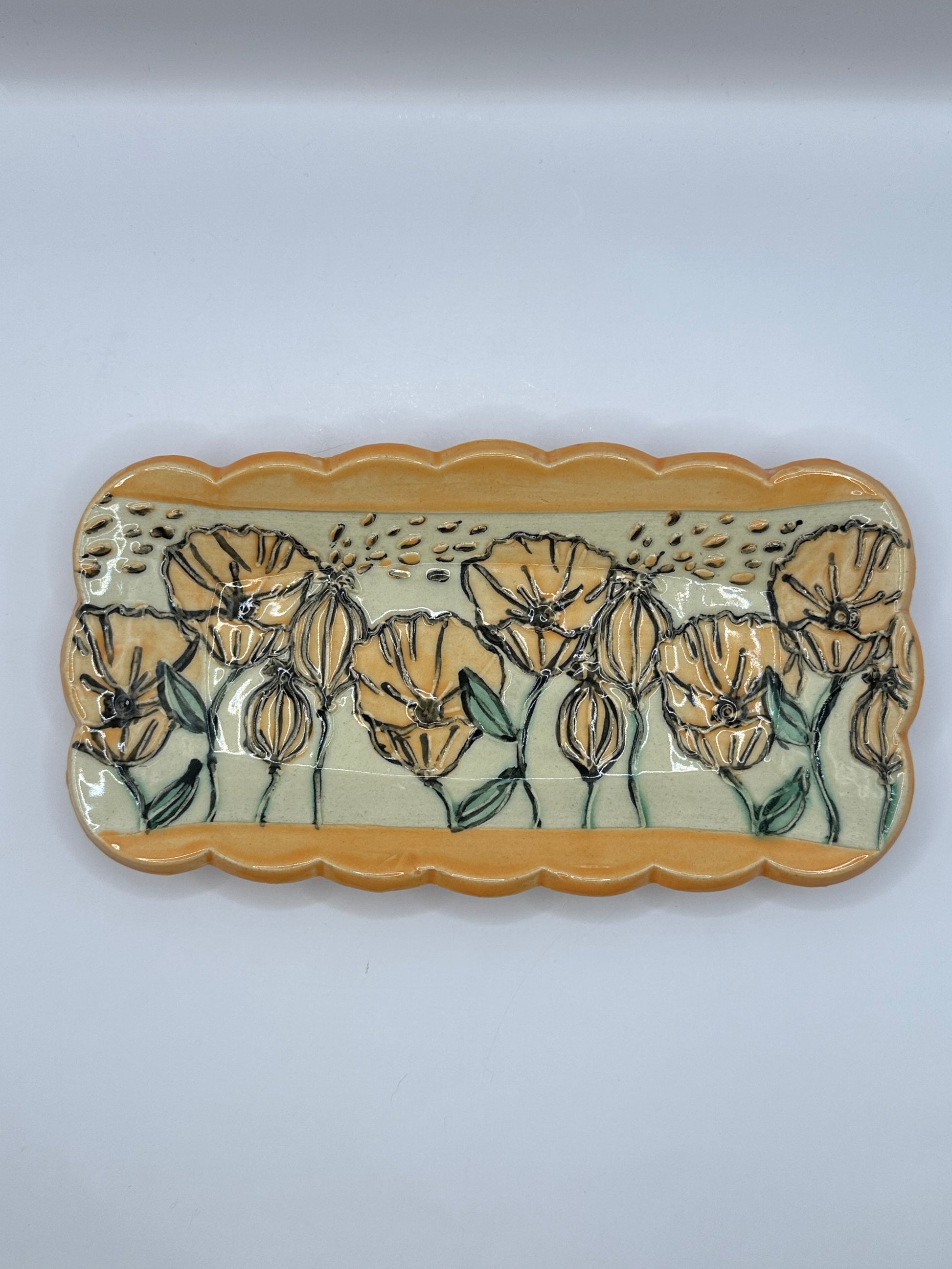 Rectangular Dish Scalloped - Textured Poppies - Multiple Colors Available
