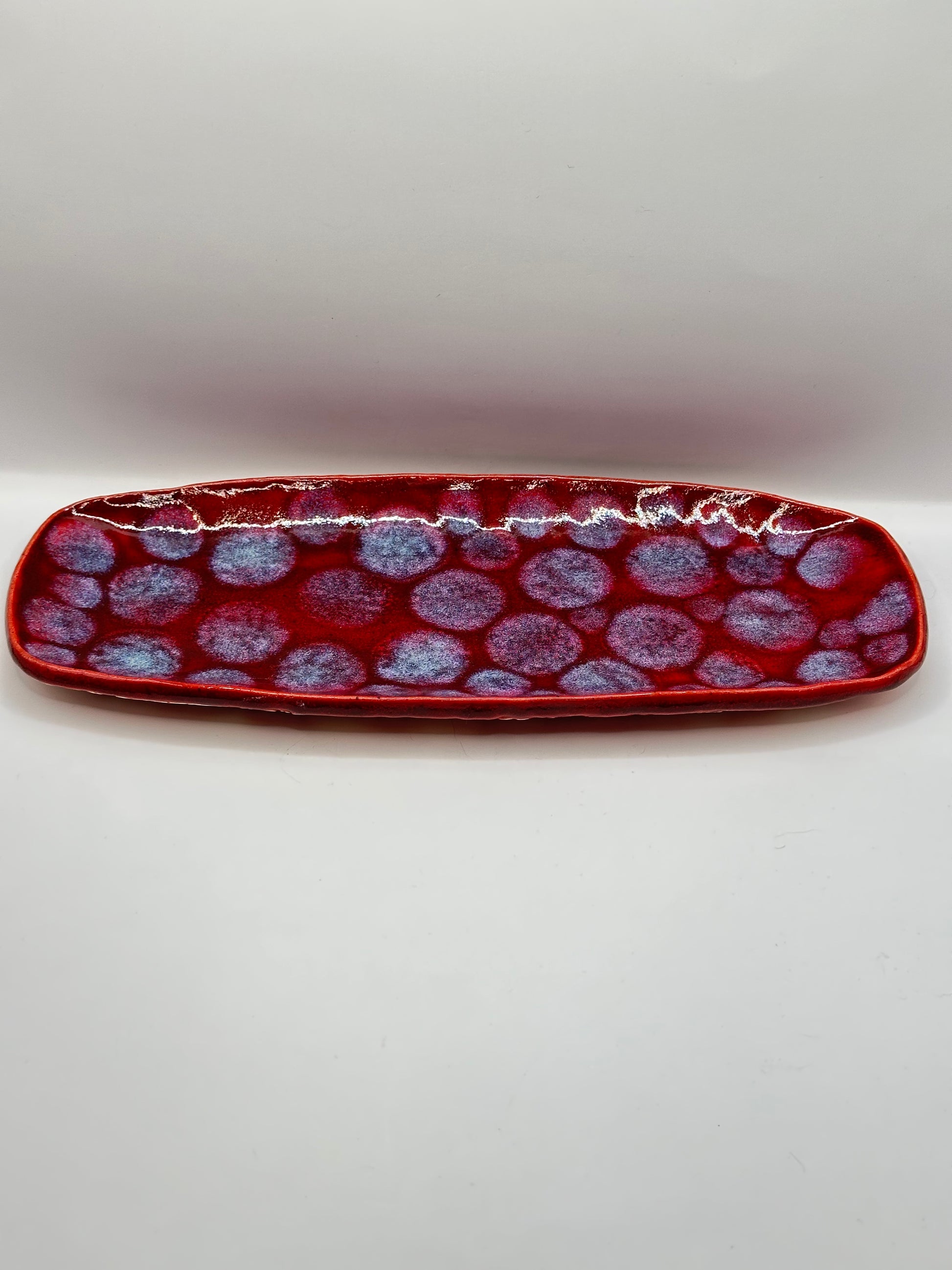 Rounded Rectangle Dish- Red Frozen Pond